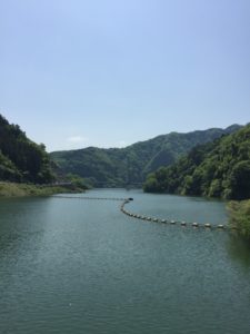 ダム上から見たダム湖の風景は静寂の中、緑に囲まれ、穏やかな風景が広がっていました~。
