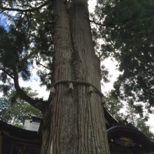 最初の鳥居をくぐり、拝殿へ。お参りをするときのいつも決めているお願い事をした後に拝殿横の樹齢何百年もの杉に触れました。