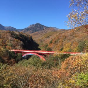 さらに紅葉が広がる景色に出くわしたのが、「東沢橋」。