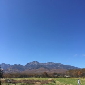 そのお店の駐車場から眺めた八ヶ岳が雲一つない青空と相まって、ちょっと感動~。