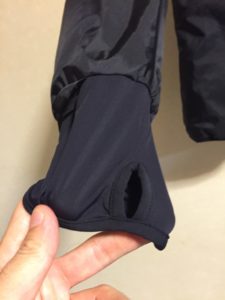 袖には親指をかける穴があり、グローブとの隙間をなくし、こちらも防寒はばっちりです。
