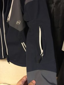 左腕にはコンパクトなポケットがあり、小銭入れなどに重宝してます。