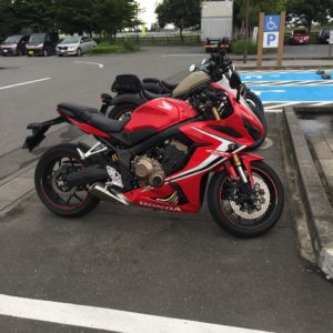 今回のショートソロツーの最後に伊佐沼沿いでCBR650Rと一枚です。