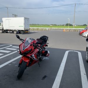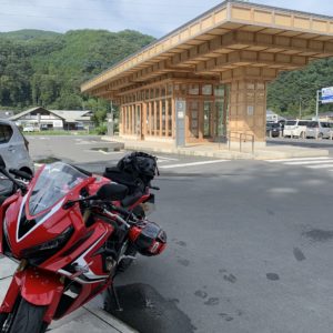 道の駅の建物のつくりに味わいがありますね~。おもわずCBR650Rと一枚。