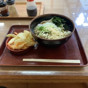 冷たいうどん&かき揚げをたいらげました。秩父のうどんはコシがあって食べ応え十分。