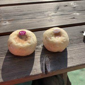 かぼちゃとあんこ、二つを注文し、店外のベンチでほっこり頂きました。
