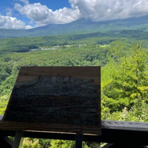 すぐ先に地蔵峠展望台があり、早速1日目の楽しみの一つ、御嶽山の風景を眺めて行くことにしました。