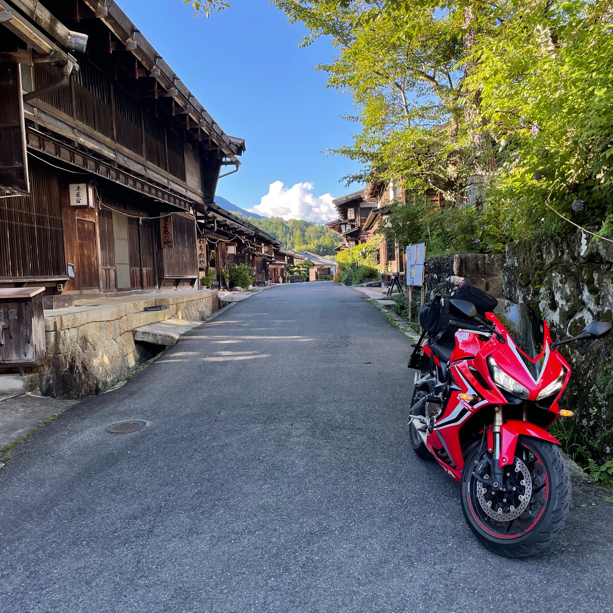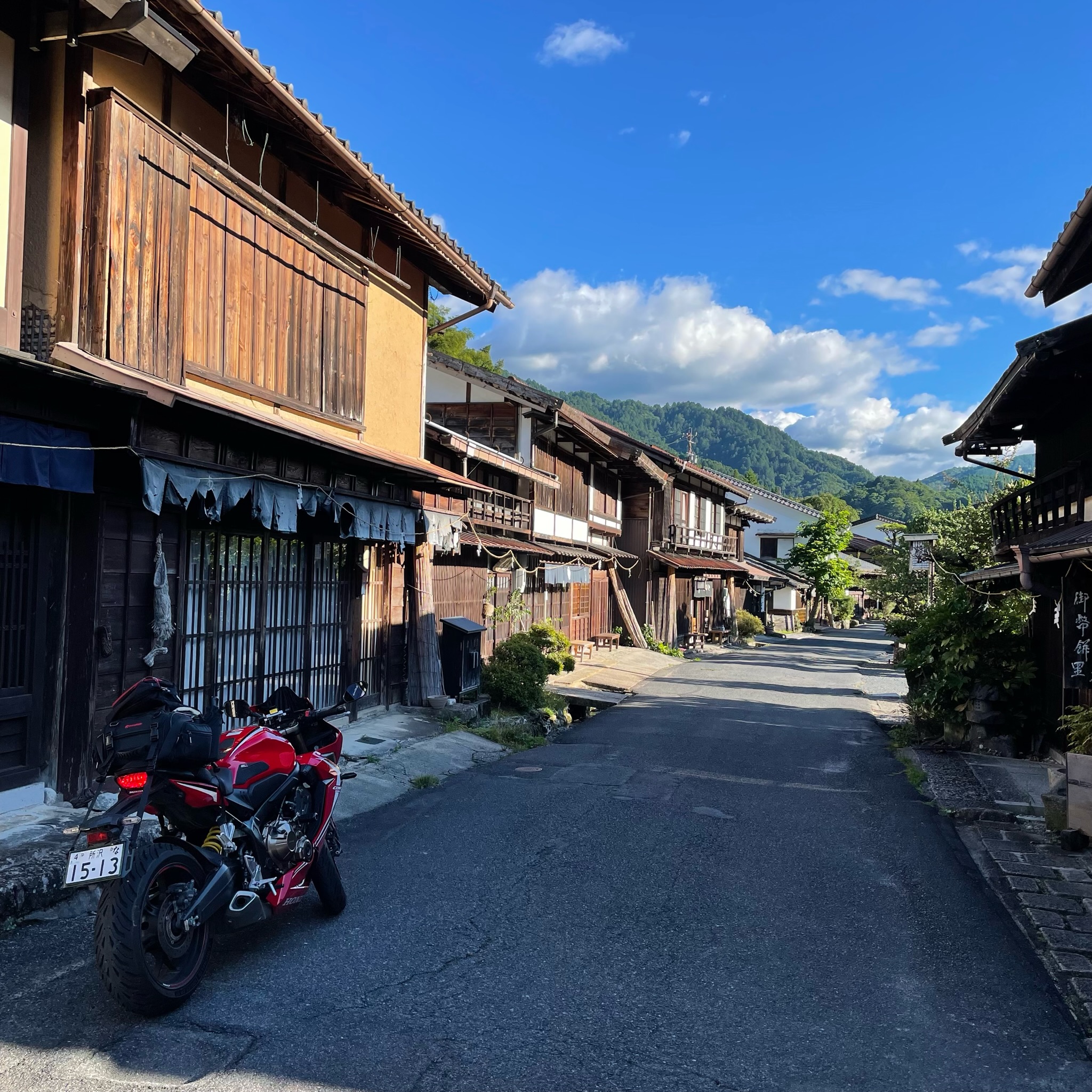 妻籠宿内をCBRで10分もかからない時間で通り抜けただけですが、いい思い出を作れました〜\(^o^)/