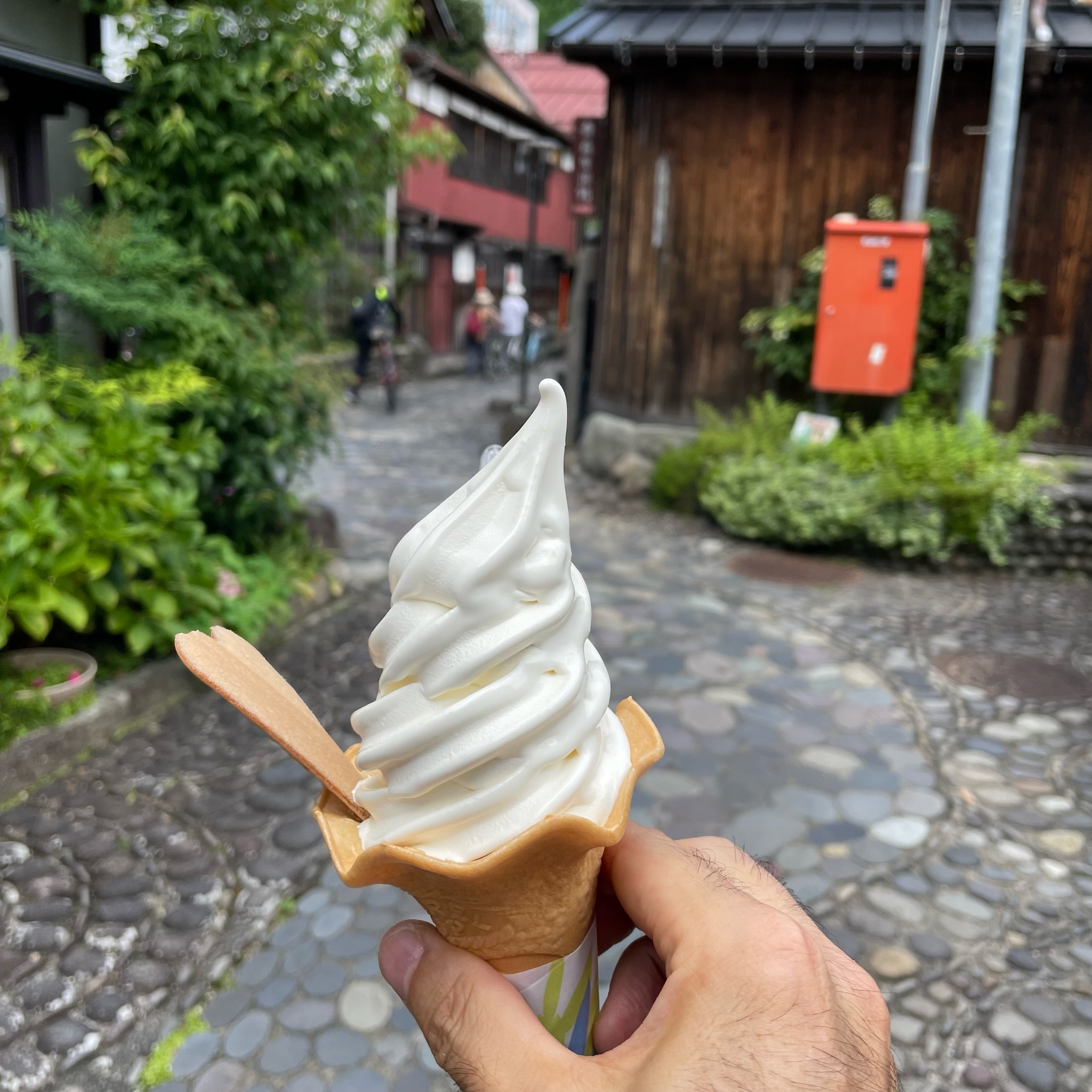 小径を超えるとソフトクリームの看板を見つけ、迷わず購入。