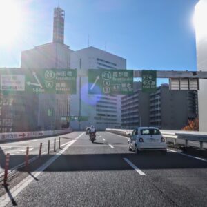 大きな標識の後に「首都高速」の目印を左折して進入、ここから首都高ツーリングの始まり〜♪