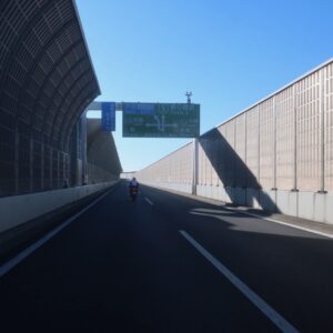 このルートは防音対策なのか道の両側に高めの壁が続いており、風景が抜けないのが残念。。。