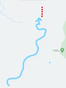 水色の矢印通り北上するも、赤点線の箇所には道が消えてます(;^_^A