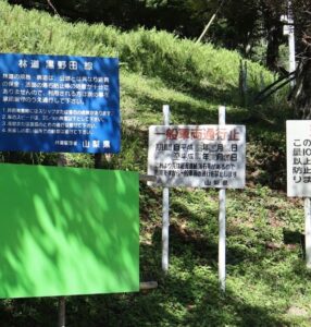 Uターンして先程の林道入口付近に戻って看板たちを見ると。。。