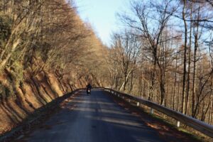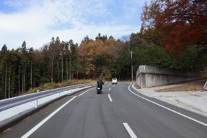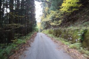 舗装されている林道ですが、たまに凸凹があるので、こちらもご注意を。