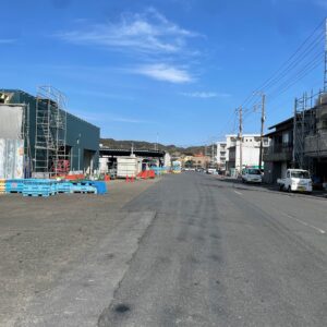 海の見えない街中の風景が続いた後左折、海を目指しますが、この辺りは住宅が多いためか、防風林的エリアに遮られる風景が続きます。