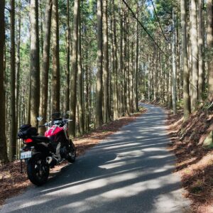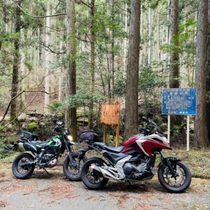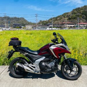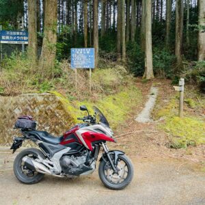 舗装ながら荒れ気味想定の林道を走るために今回はオンロードアドベンチャー・NC750Xを相棒に。