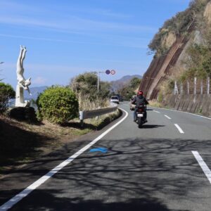 伊豆の海の高台風景とアートのコラボは走っていて気持ちいいものです。
