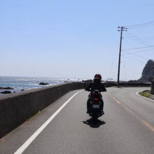 春の晴天の中、海沿いを走る気持ちよさはたまりません〜