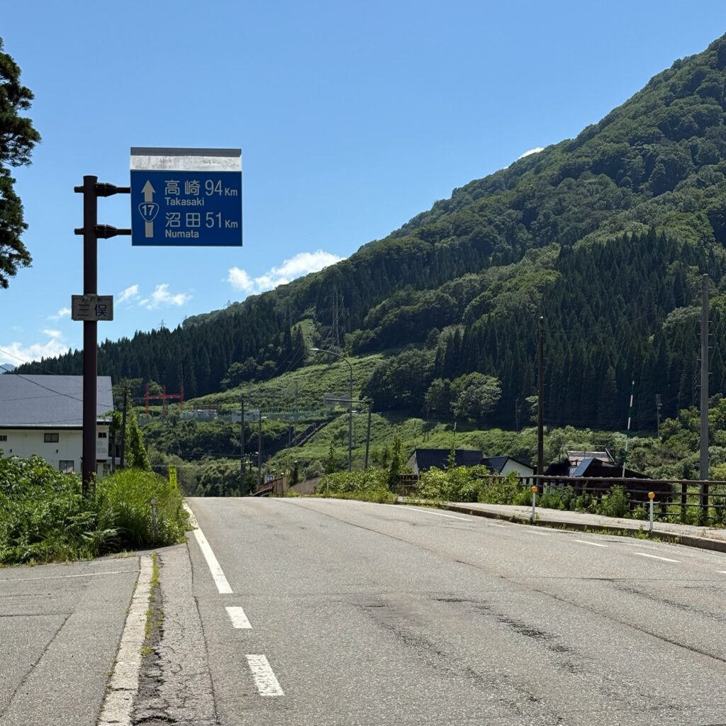苗場を出発、夏らしい緑の並木が続くR17を気持ちよく流していきます。