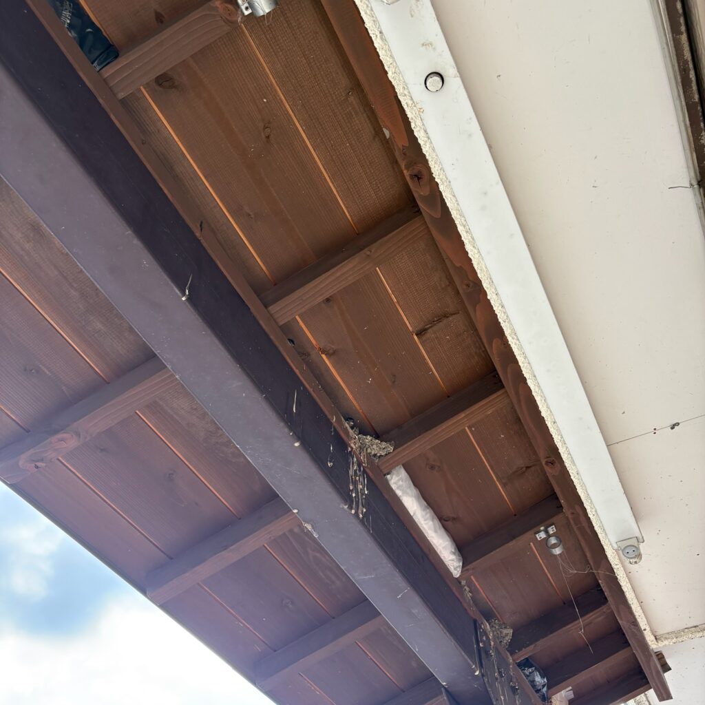 軒先には雛が巣立ったあとの燕の巣が。