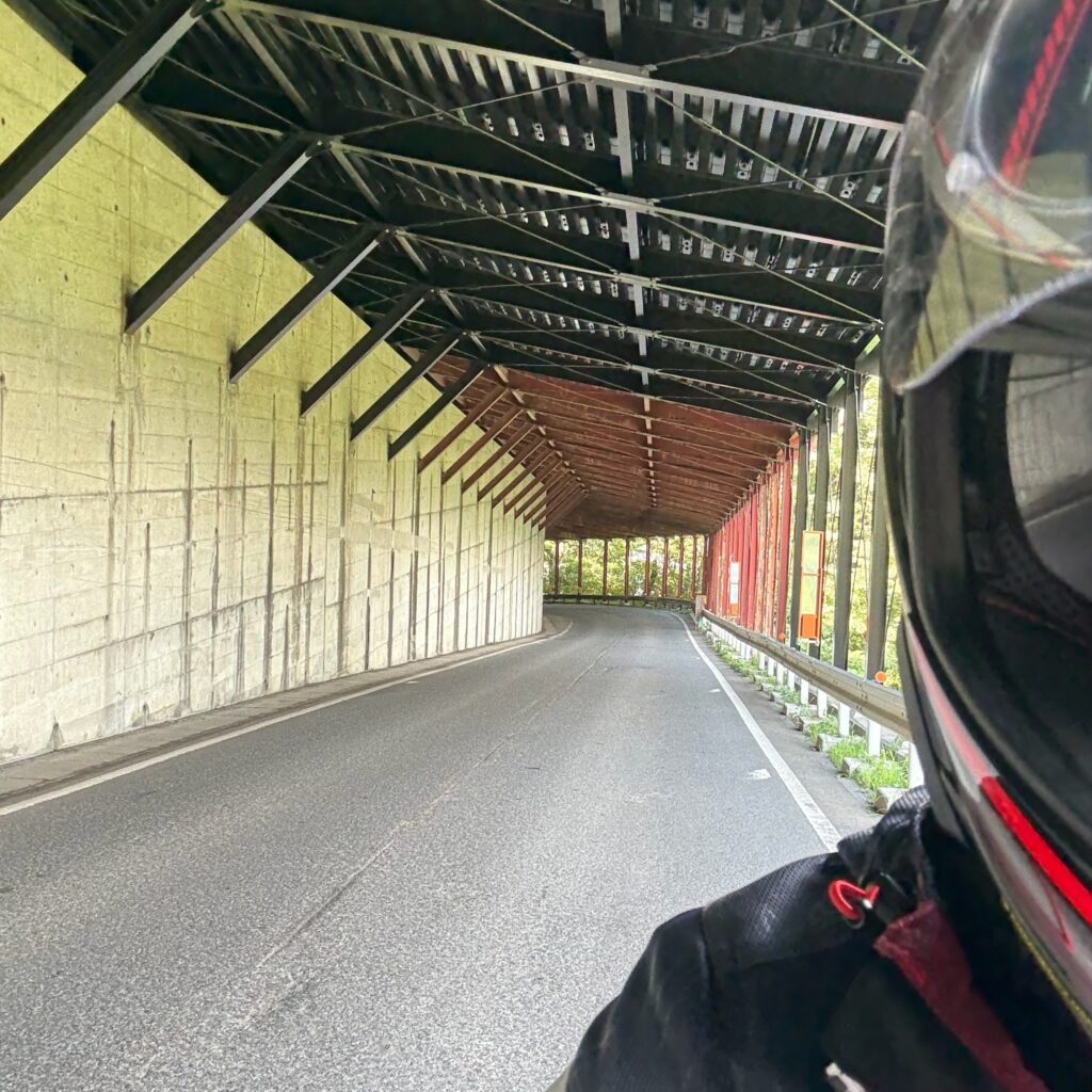 r560、通称「ほくほく街道」に入ると、こちらも雪国らしい風景の長いスノーシェッドが姿を現します。