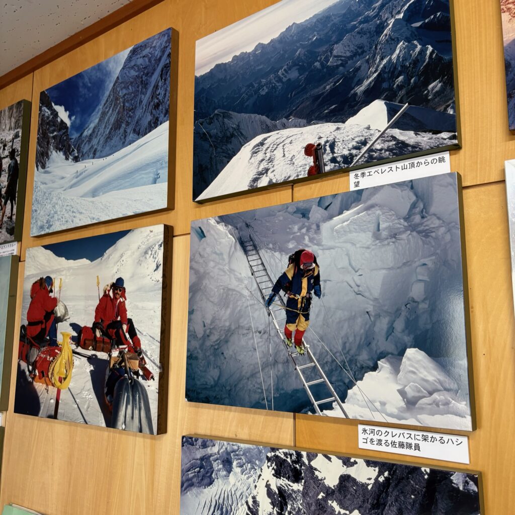 エベレストなどの登山シーンの写真が展示されていました。